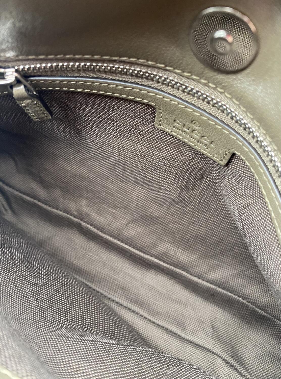 Descrizione: Borsa in pelle con logo Gucci frontale, chiusura sicura e tracolla per doppia portabilità