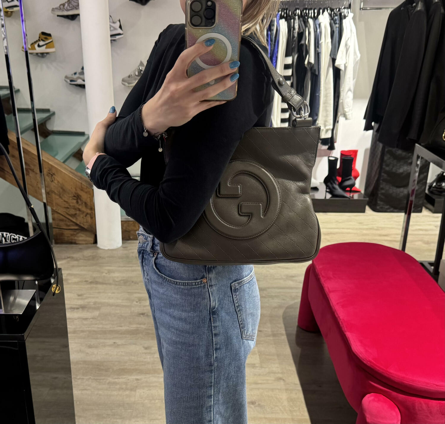 Un'icona di stile senza tempo, la borsa Gucci Blondie incarna l’eleganza raffinata e la qualità artigianale della maison. Realizzata in pelle marrone pregiata, si distingue per il design sofisticato e i dettagli di lusso, tra cui l’emblematico logo Gucci frontale. Dotata di tracolla per un utilizzo a spalla o a tracolla, è perfetta per ogni occasione, dal giorno alla sera.